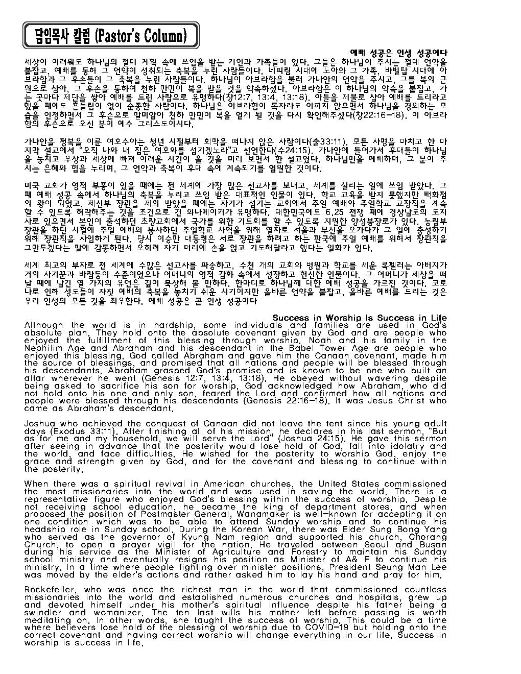 예배 성공은 인생 성공이다 I Success in Worship Is Success in Life (09/26/2020